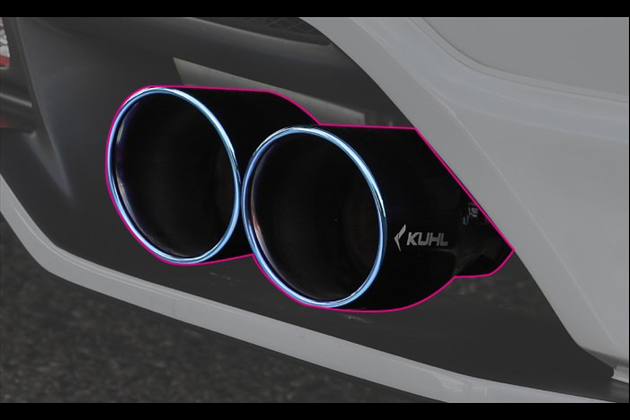 高品質ステンレスを使用し、テールエンド左右には『KUHL RACING』ロゴマークを刻印。