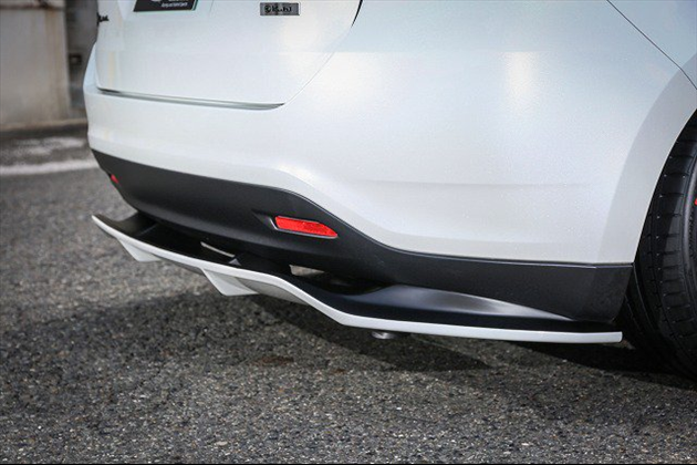 ・リアフローティングディフューザーは純正バンパー下部に吊り下げマウントすることにより、インパクト溢れる美しいリアビューを作り上げています。