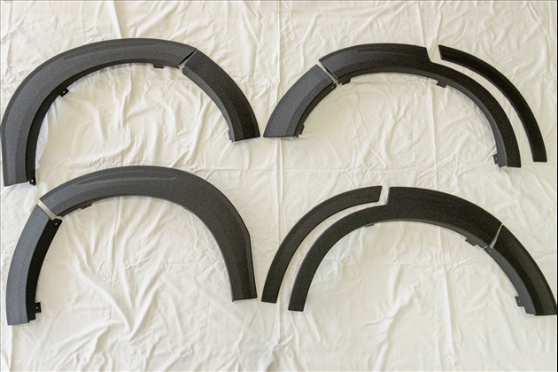 ・前後のオーバーフェンダーは純正フェンダーの上に貼り付ける構造のため、取り付け時にリア下部(リアタイヤ前付近)は純正素地が露出した状態となります