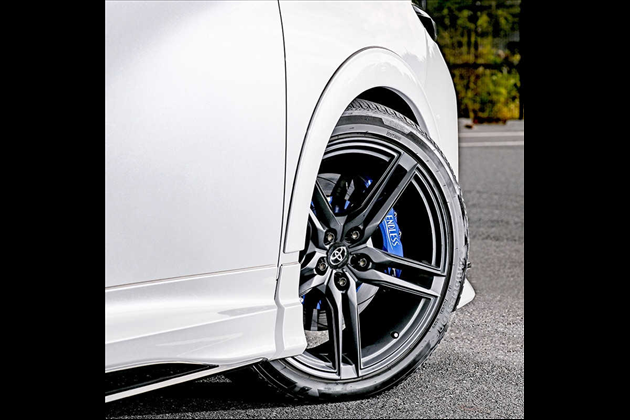 全幅約18mm拡幅と共にエアロフェンダーを下側に9mmダウンさせているため、フェンダーとタイヤのクリアランスが