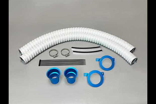 TM SQUARE フォグ リプレイス エアファンネル キット は、スイフトスポーツ(ZC31S/ZC32S/ZC33S)の純正フォグランプを取外し、その部分に、フレッシュエアーの導入口となる エアファンネル を装着。また、このファンネル部に、抜群の強度を誇る耐熱ダクト(グラスファイバーとアルミクロスの4層構造)を接続し、フロントブレーキの冷却を行うことができるキットです。