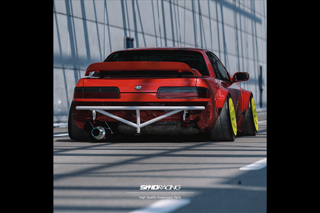 ・180sx純正ウィングにダックテールの要素を追加し、後ろからもよりウィングが主張するデザインに仕上げました。