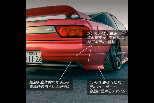 ・プレスライン、形状等180sx純正との調和を最大限に考えデザインしました。