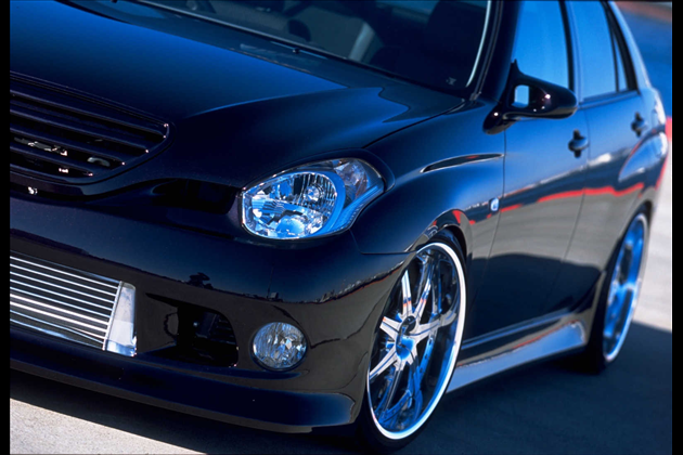 フロントとリヤをハーフタイプではなくバンパー交換タイプでデザインし、フォグランプの下部分やヘッドライト横のダクト処理など細部に拘り、ラインの位置を慎重に決め、シャープなイメージを演出します。