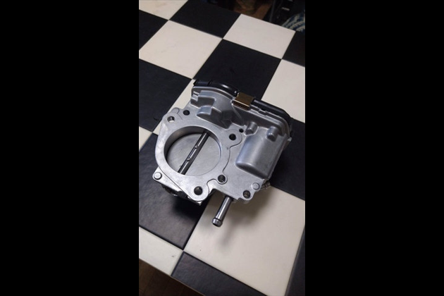 MXPA10用(素ヤリス)純正スロットル加工のビックスロットルです。純正スロットルをお預かりしファンネル部を拡大加工し、これに合わせて大型化したバタフライを製作し組み込んでいます。