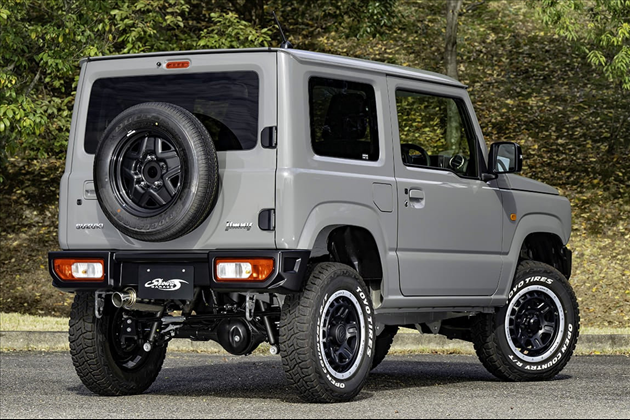 このモデルはショートバンパースポイラー換装時に必要とされることの多いスペアタイヤの移動は避けられないものの、ライセンスプレートはこれまで通り装着できるためコストを抑えたカスタムが可能です。