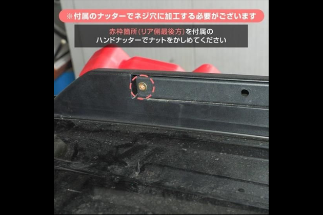 ※ルーフレールの左右1箇所づつ付属のナッターでネジ穴を追加する必要がございます。
