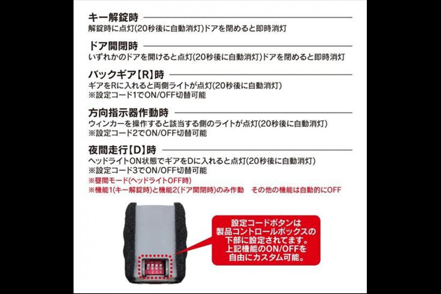 ※3~5は機能のON/OFF設定が可能です。装着前に行って下さい。
