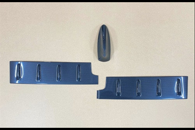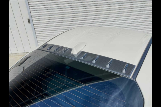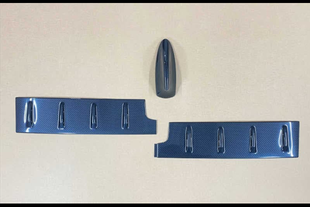 1)透明アクリル(耐衝撃)樹脂の裏面に特殊印刷でカラーリングした成形品のボルテックスジェネレーターで車両(GR86)ルーフ後方部に両面テープで取り付けます。