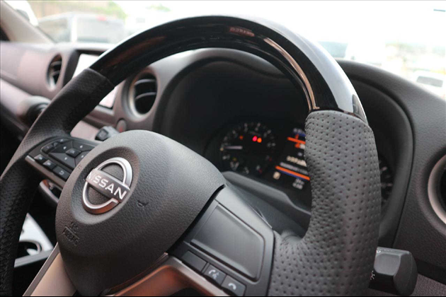 Dynasty Grand 本革ガングリップD型ピアノブラックコンビハンドル for キャラバン E26系 グランドプレミアムGX マイクロバスGX