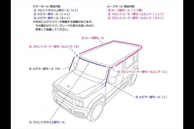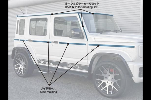 AERO OVER G62L | 5ドア ルーフモール&ピラーモールSET 【5ドア車用】 for ジムニーノマド JC74W